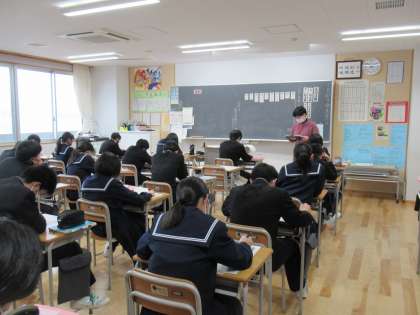 2月10日(金) 3年生 受検、卒業、そして春に向かって 公開日 2023/02/10 更新日 2023/02/10 3学年 写真上は、国語の授業の様子です。実戦問題に取り組み、ポイントの説明を真剣に聞いています。 月曜日には、県立高校推薦入試選抜試験があります。雪が融けて春に近付いていくのと同時進行で、受検、そして卒業に近付いています。