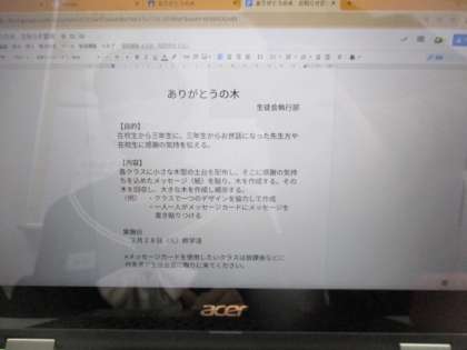 3年生から在校生へ、在校生から3年生へお互いに感謝の気持ちを伝え合う企画です。