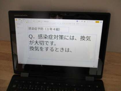 感染症を予防するためのクイズを作成中です。自分自身で感染症を防げるよう、保健委員会が様々な方法で伝えていきます。