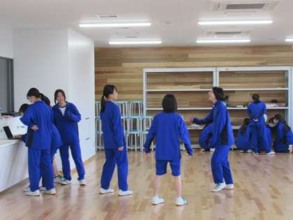 今日は、集会室でダンスの授業を行っています。暖かくてよいですね。
