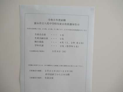 昨日、令和5年度前期生徒会選挙の告示がありました。今日、明日が立候補受付期間となります。