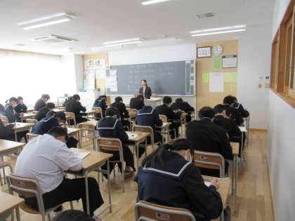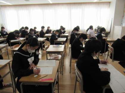 1限 技術家庭、2限 英語、3限 国語 のテストに取り組んでいます。
