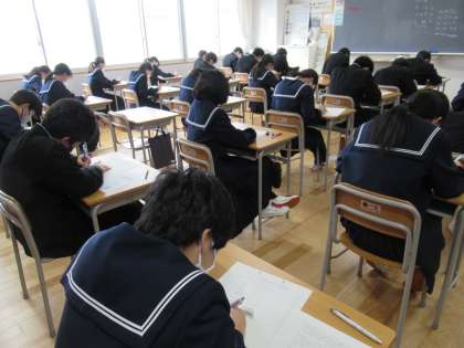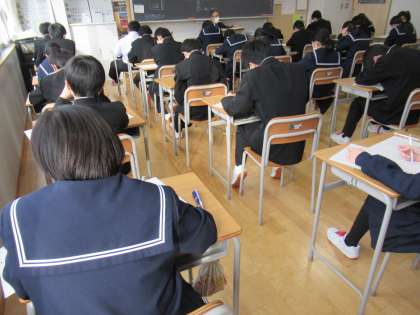 1限 社会、2限 音楽、3限 理科 のテストに取り組んでいます。最後までガンバレ!