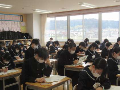 1限 美術、2限 数学、3限 技術家庭 のテストで終了です。