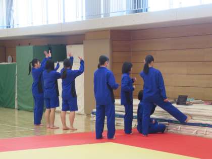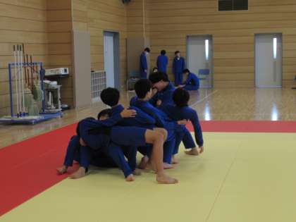 おや?何をしようとしているのでしょうか。どうやら、円になって後ろの人の膝の上に座る動きに挑戦しているようです。チャレンジ中です。
