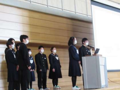 3年生からお返しに、校歌のプレゼントがありました。