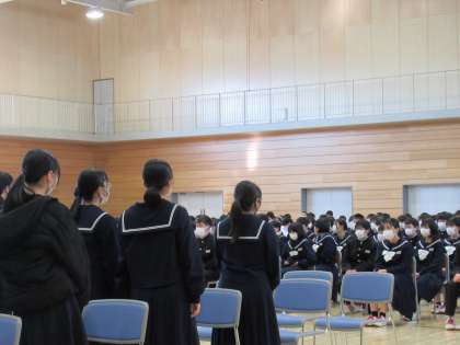 全校生徒の宝物である校歌を歌ってくれました。歌の後、1・2年生にメッセージも手渡されました。