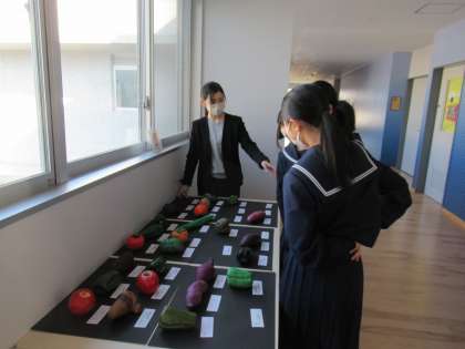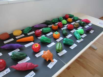 色、形にこだわって作った本物そっくりの野菜や果物が完成しました。