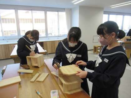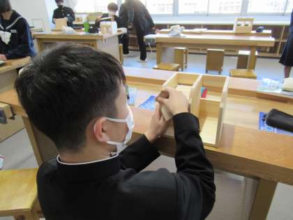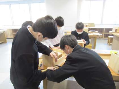 完成した生徒、完成間近な生徒と様々です。助け合って製作中です。