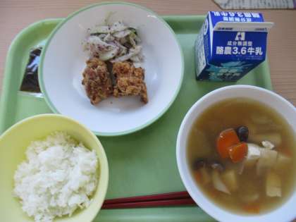 1回1回の給食を味わって食べましょう。けんちん汁、竜田揚げの名前の由来については、以前に紹介しましたが覚えていますか。