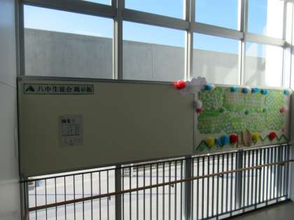 南階段の1階から2階に上がるところに、生徒会掲示版を設置しました。
