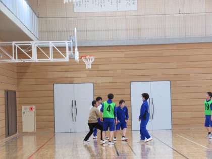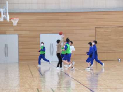 担当の先生も一緒に試合形式でバスケットボールをしています。
