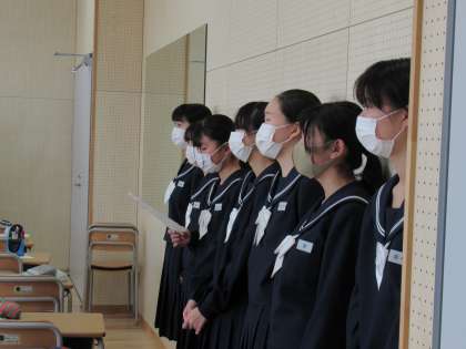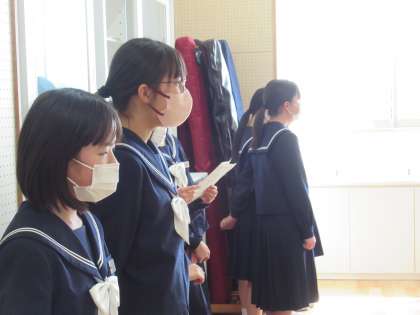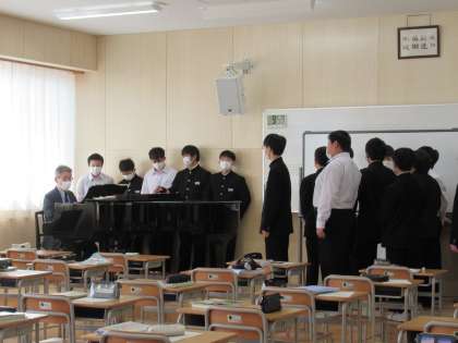 在校生から卒業生に向けて贈る歌の練習をしています。