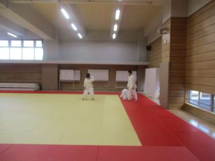 柔道部は、柔剣道場で立ち技に取り組んでいます。