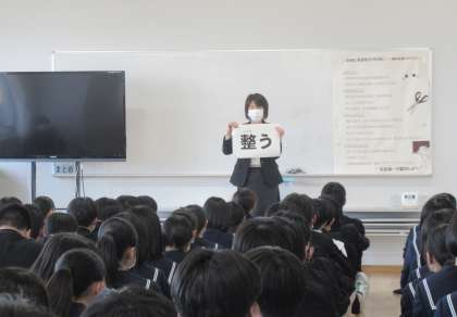 校長先生からは「私立受検の際に話した3つの"あ"を思い出しながら、最後まであきらめず、やりきってきてください。」とエールをいただきました。サウナの日にちなんで、「整う」という言葉を基に、心と体を整えて臨んでほしいと話されました。