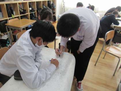 各自、富山市の大きな地図を広げて、様々なことを読み取っています。
