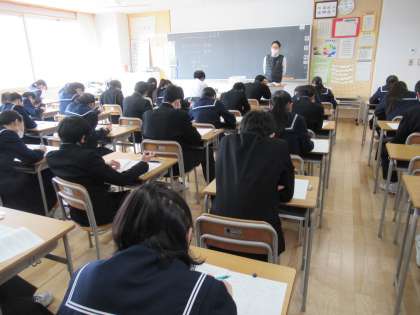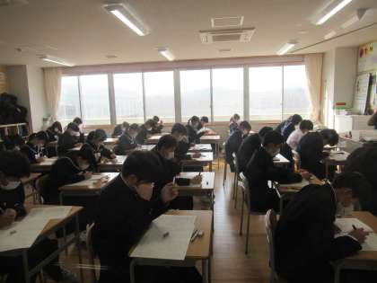 県立高校一般入試二日目。2年生も同じ時間割で、英語、数学の2教科のテストに挑んでいます。