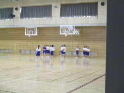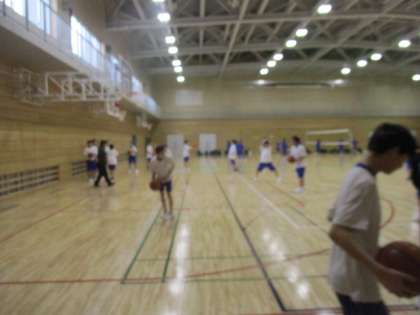 男女バスケットボール部はシュート練習を中心に、バレーボール部はアタック練習を行っています。