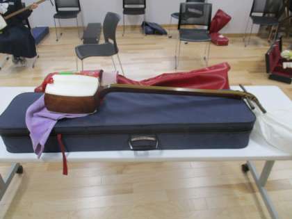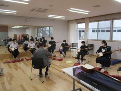講師の先生から、細かく丁寧な指導を受けています。伝統芸能の継承です。