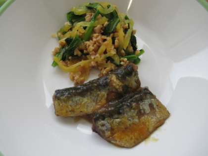 今日のメニューでは、小松菜とたくわんと納豆のコラボが絶妙で美味しいですね。
