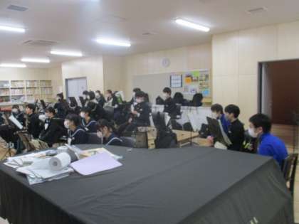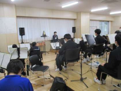 卒業式の演奏に向け、部長が中心となり頑張っています。
