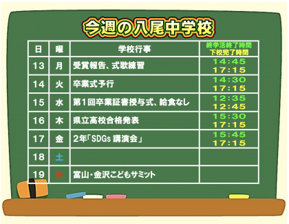3月13日(月) 今週の予定