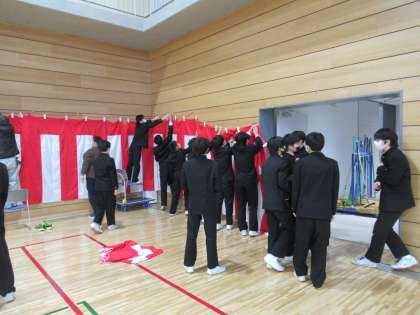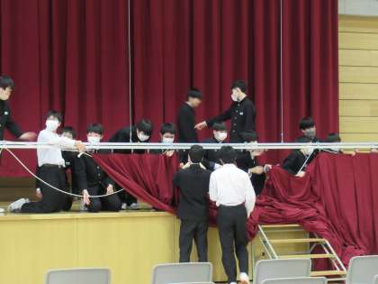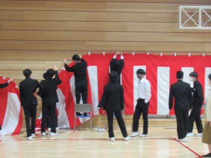 紅白幕、ステージ幕、椅子、、、手際よく協力して準備しました。さすが、来年度の最高学年です。