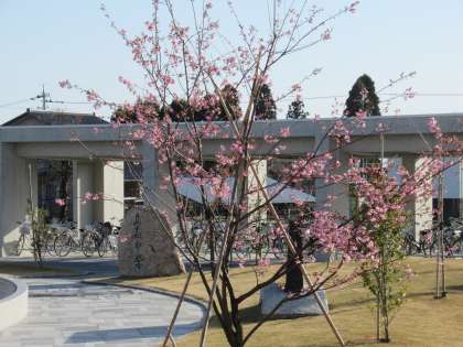 昨日とは打って変わり、今日は晴れのよい天候です。河津桜が八尾のニワのそばで美しく咲いています。