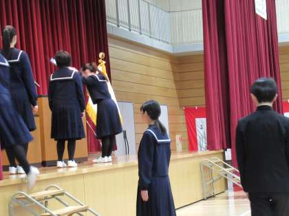 3月14日(火) 卒業式予行練習 その1 公開日 2023/03/14 更新日 2023/03/14 八尾中学校のページ 本番さながらの中、卒業式予行練習を行いました。 卒業生は、当日と同じように、マスクを外して行いました。マスクなしの顔は、とても新鮮に見えます。 今日からもう緊張しています。既にうるっときている生徒もいます。