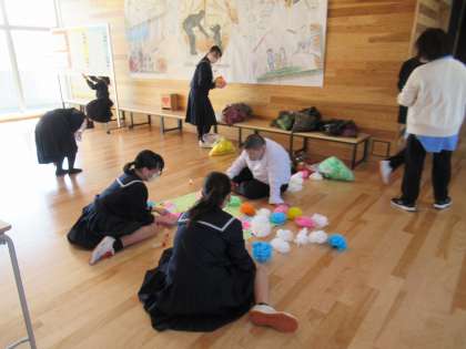 1年生は、放課後残って3年生の教室の飾り付けをしています。