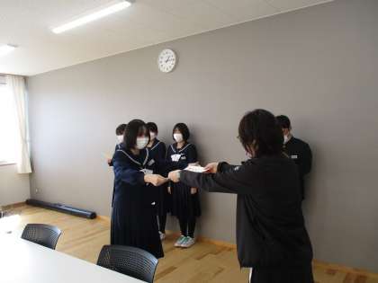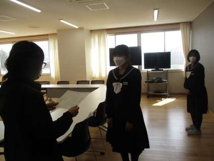 3年生の茶道部の生徒に、茶道裏千家の協会よりいただいた「奨励証」を渡しました。