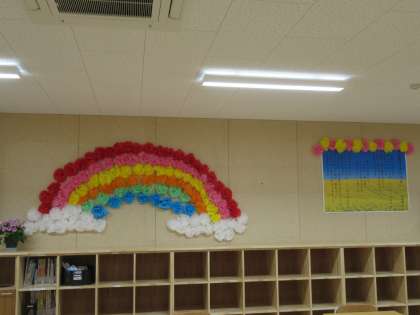 教室も受付も準備万端です!学校全体が祝福ムードに包まれています。