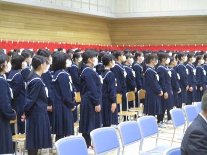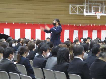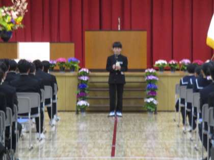 3月15日(水) 第1回卒業証書授与式 送辞・送別の歌 その1 公開日 2023/03/15 更新日 2023/03/15 八尾中学校のページ 在校生代表生徒による送辞の後、在校生全員で送別の歌「心の中にきらめいて」を歌いました。3年生への感謝の気持ちを込めて歌いました。
