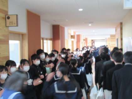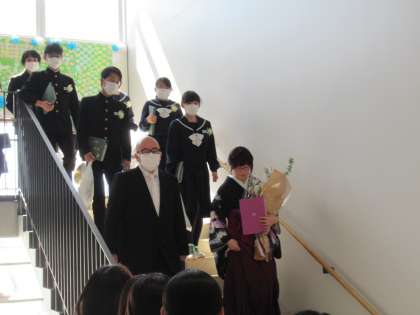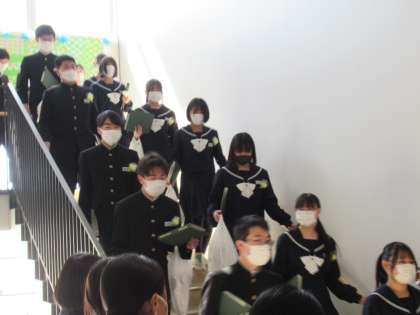 3月15日(水) 第1回卒業証書授与式 歓送 その1 公開日 2023/03/15 更新日 2023/03/15 八尾中学校のページ 広い校舎の特性を生かし、歓送は校舎をぐるっと巡りました。 1・2年生は教室前で卒業生を見送りました。