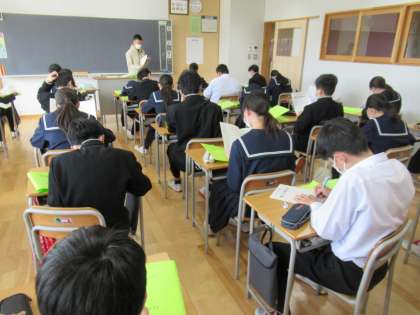 3月16日(木) 1年生 総合的な学習の時間 働く人に学ぶ講演会に向けて