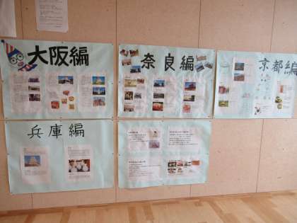 奈良、京都、大阪等について調べたことが掲示してあります。