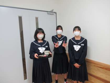 最後は、講師の先生の手作りの桜餅と和菓子、抹茶を校長室へお運びしました。