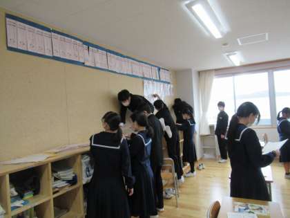 全員で力を合わせて、掲示物を外したり、プリント類を配ったりし、学級の締めくくりの日に向けて教室整備をしています。