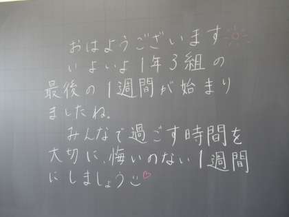 現在のクラスの仲間と過ごす時間もあとわずかです。皆で決めた学級目標を基に、振り返りをし、残りの時間を大切に過ごしましょう。