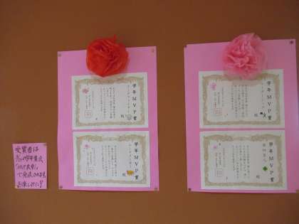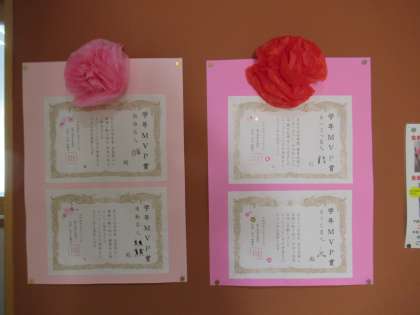 そうじMVP、リーダーシップMVP、親切MVP、ムードメーカーMVP、あいさつMVP、、、等、様々なところで頑張っていましたね。