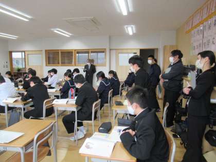 たくさんの先生方が参観し、生徒は少し緊張気味でした。