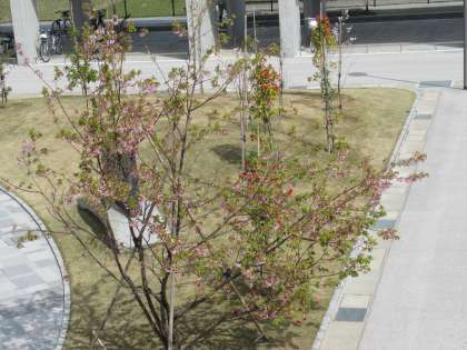一足お先に咲き誇った「河津桜」が散り始めたと思ったら、昨年植えたばかりで小さなソメイヨシノがチラホラ咲き始めています。