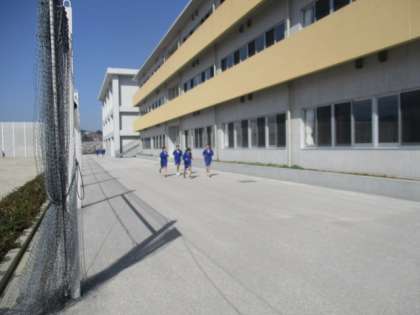 陸上競技部はランニング、サッカー部はパス練習に取り組んでいます。