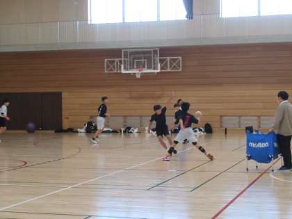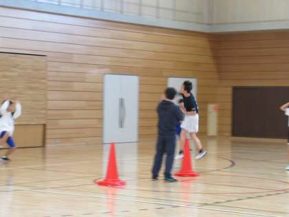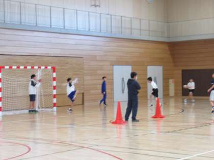 いつも八尾アリーナで活動しているハンドボール部は、今日は体育館で活動しています。
