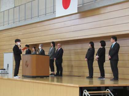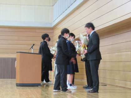 代表生徒が、これまでのお礼を含めた挨拶をし、花束の贈呈を行いました。
