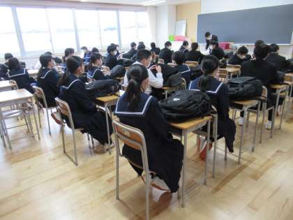 ドキドキ、ワクワク、どんなクラスかな?学年棟に生徒の声が響き渡っています。