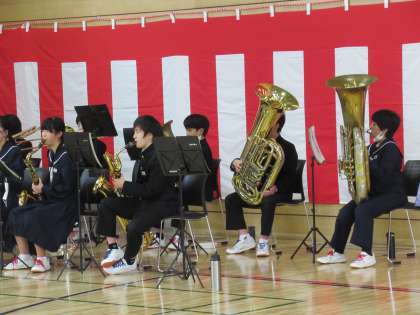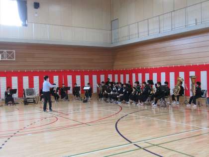 明日の入学式に向けて、吹奏楽部は特別に体育館で練習をしています。