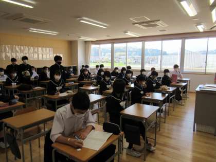 予鈴では、ほぼ全員着席しています。係等はまだ決まっていませんが、主体的に動いています。