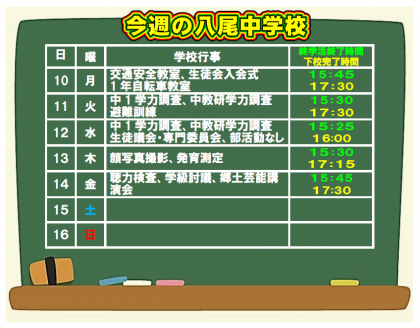 4月11日(火) 今週の八尾中学校