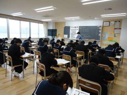 1年生は中1学力調査(社会、英語)、2、3年生は中教研学力調査(数学、社会)、共に2日目の学力調査に挑戦中です。